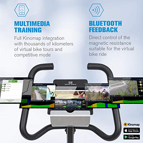 Specification: Capital Sports Evo – ergometer, hometrainer, bluetooth, magnetisch remsysteem met 32 niveaus, app-integratie, optie tot 21 kg vliegwiel, tablethouder, pulssensor