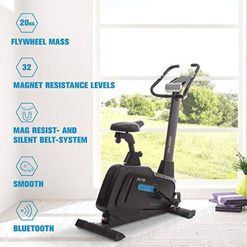 Capital Sports Evo – ergometer, hometrainer, bluetooth, magnetisch remsysteem met 32 niveaus, app-integratie, optie tot 21 kg vliegwiel, tablethouder, pulssensor