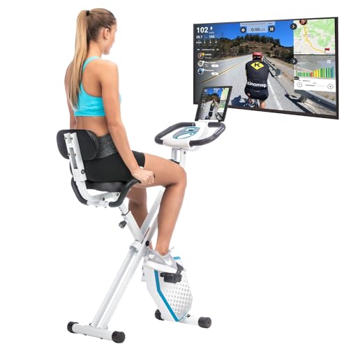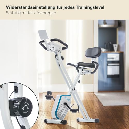 skandika Foldaway X-1000 PLUS fitnessbike hometrainer X-Bike met handpulssensoren, bluetooth-computer, tablethouder, rugleuning