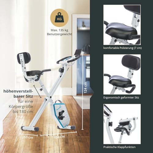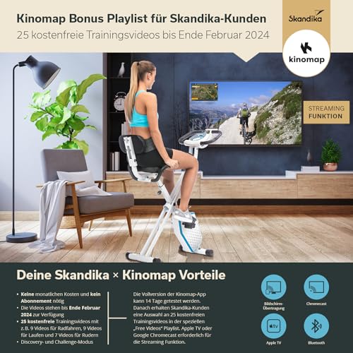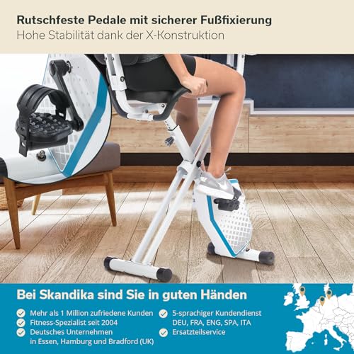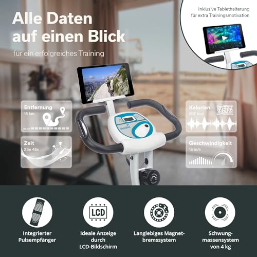 Specification: skandika Foldaway X-1000 PLUS fitnessbike hometrainer X-Bike met handpulssensoren, bluetooth-computer, tablethouder, rugleuning